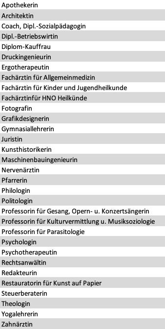 Folgende Berufe sind in unserem Club vertreten:
